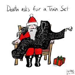 This cartoon is really only notable because it's the only "full color" edition. Originally I had intended it to be a sort of greeting card that would be printed out on glossy paper, but then I wondered about how many people would want to send Death on a greeting card. Ah, the subtleties of the subject matter...